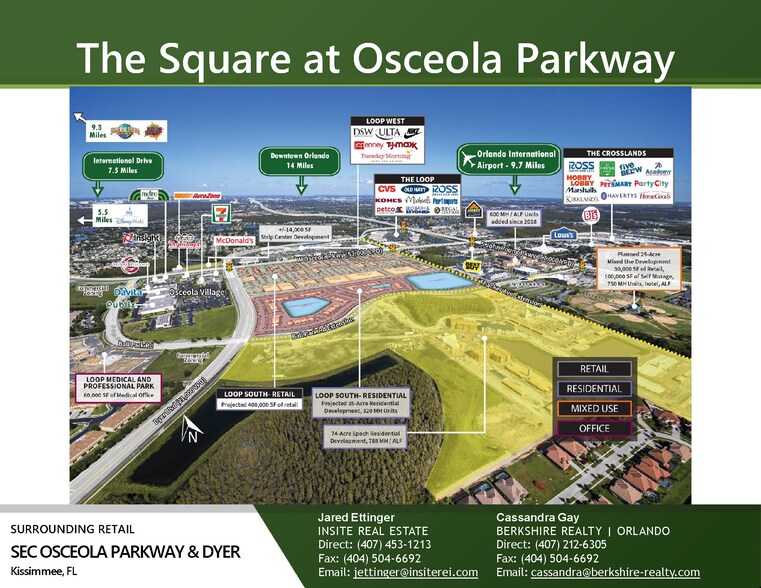 The Square at Osceola Parkway PUD a droit à 521 000 SF de détail, 320 000 bureaux SF, 300 chambres d'hôtel et 400 Unités MFH.