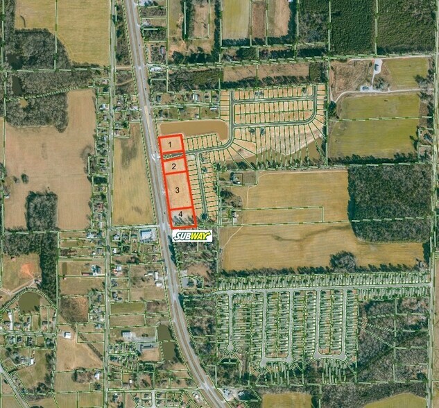 4 Tracts disponibles Parcelle 1 : Lot d'angle - 1,41 acres avec 200 pi de façade Parcelle 2 : Lot d'angle - 1,27 Acres avec 180pi de façade Parcelle 3 : Lot intérieur - 3,07 Acres avec 450pi de façade Parcelle 4 : Lot d'angle - 1,45 acres avec 196 pi de façade Les lots sont prêts pour le tampon. Le nombre de trafic est d'environ 15 934 VPD. Zoné HC (corridor routier). Égouts disponibles. À environ 6,5 milles de Hampton Cove À environ 3,5 milles du centre-ville de New Hope