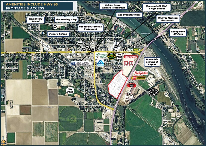 Phase II commercial build-to-suit retail opportunity located on Highway 95 at S 3rd Street East in Homedale, Idaho. The project offers flexible design options, with the ability to accommodate tenants seeking a single ±1,500 SF suite up to approximately ±30,000 SF in a stand-alone retail building. Lease rates and terms are negotiable. Contact listing agents for details and conceptual layout options. The site features prime Highway 95 frontage with direct property access, utilities at or near the site, an on-site irrigation canal, and mature old-growth trees that enhance the setting. The development is located adjacent to a new retail center anchored by D&B Supply and Jacksons Food Stores, with a quick-service restaurant and an auto parts retailer pending. Additional nearby traffic generators include the Badiola Rodeo Arena, Homedale Municipal Airport, Moxie Java, Les Schwab Tire Center, Albertsons, Homedale City Parks, Homedale Garden Apartments, Homedale Junior–Senior High School and football field, Idaho Pizza, and a variety of local retailers, restaurants, and service providers. Homedale continues to experience strong growth consistent with other Idaho bedroom communities, supported by a 10-mile population of 22,251 and an average household income of $91,620. Contact agents for additional property information and development details.