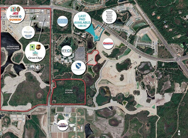 CBRE est heureux d'annoncer un nouvel aménagement de commerces de détail et de bureaux à Wellen Park, situé dans le comté de Sarasota, en Floride. Ce développement offrait plus de 9,76 CA d'espace avec la dernière plateforme de 1,88 CA disponible à la location. Cet emplacement privilégié est à quelques minutes du Downtown Wellen Park et du stade d'entraînement Atlanta Braves Spring, CoolToday Park, ce qui en fait un site idéal.