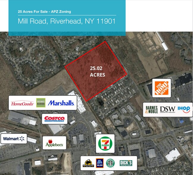25,024 Acres de terrain à vendre situés stratégiquement sur le chemin Mill à Riverhead, juste au nord de la route Old Country, très fréquentée. Adjacente à Costco et entourée de détaillants nationaux et de magasins à grande surface, cette région est une zone démographique en croissance animée et fortement peuplée située sur la rive nord du comté de Suffolk, à Long Island. Actuellement zoné (APZ) Agricultural Protection et à côté du Zonage des centres de vente au détail de destination (RDC), ce site offre des possibilités de rezonage et de développement ! Les taxes actuelles s'élèvent à 26 779,00$. Pour plus de détails, veuillez communiquer avec Steven ou Michael.