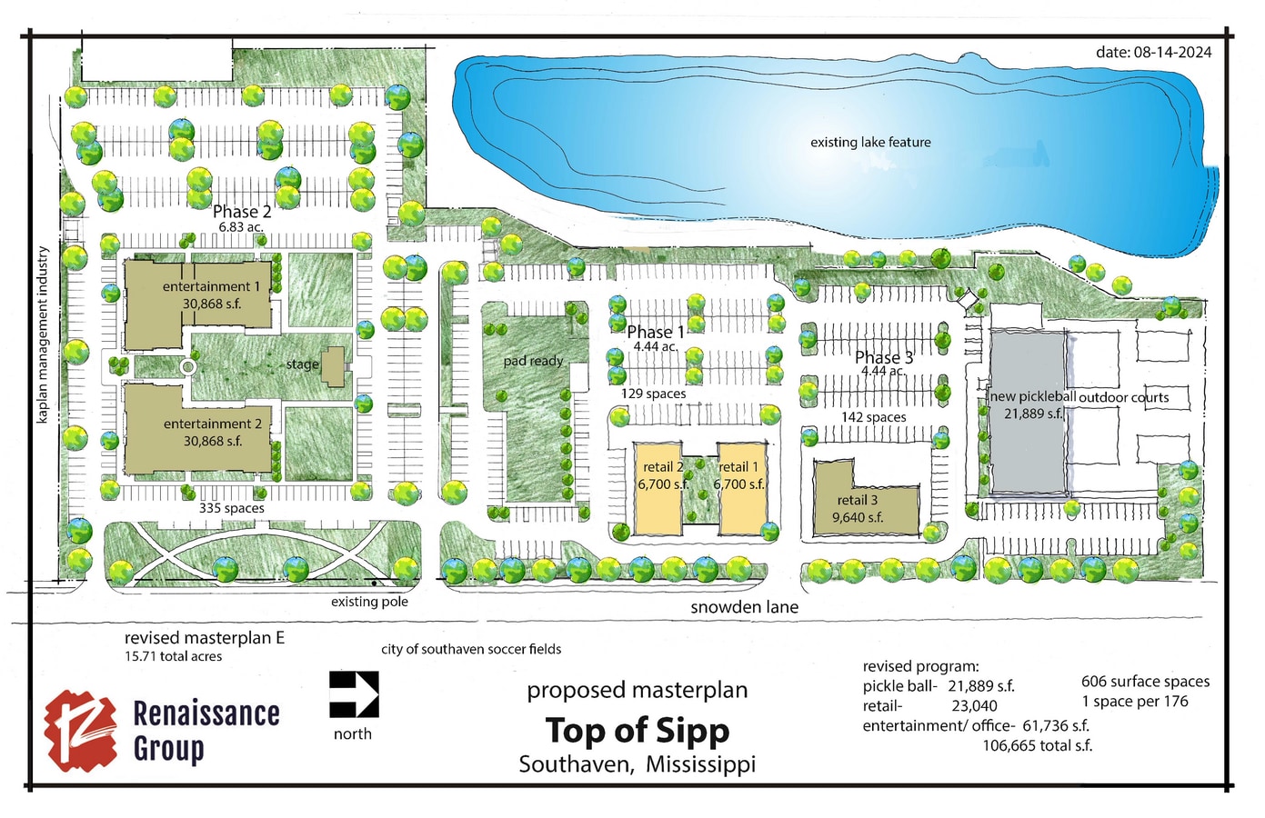 The fourth phase of the 16-acre Top of the Sipp development includes a pad ready leasing spot, ready for multi-level shops and services, retail, commercial, restaurant, or entertainment.