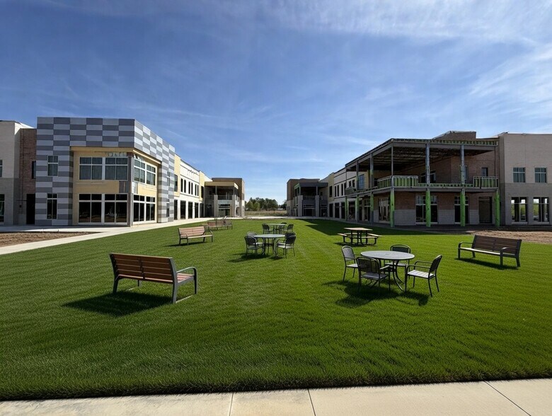 4 immeubles de plus de 90 000 pieds carrés d'espaces de divertissement, de restaurant, de commerce et de bureaux ancrés par une scène extérieure et une pelouse ouverte.