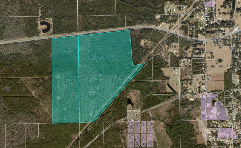 356-acre development property located directly on State Road 20 on the west side of the City of Palatka (Putnam County), located in the expanding NE of region of Florida. Utilities, including water and sewer are available from the City of Palatka (annexation not required). Jurisdiction is Putnam County, which is open to various types of development for this property, including residential, industrial, data center, and mixed use. Located just several miles west from downtown Palatka in an expanding area of northeast Florida. DOT AADT 13,264. 3,924 Ft frontage on SR20. Located just 3 miles west of Palatka, FL with approximately 3/4 mile of frontage on State Road 20. This places the property in the path of progress in a quickly developing and transitioning land base. This property is located 5 minutes from the Walmart Super-center, HCA Hospital, Publix and numerous other retail options in Palatka. Industrial, solar farm, and data center developments are possible due to the 230 KV SECI power transmission lines on the property. There is also potential for a conservation easement as the property is adjacent to the Rice Creek Conservation Area.