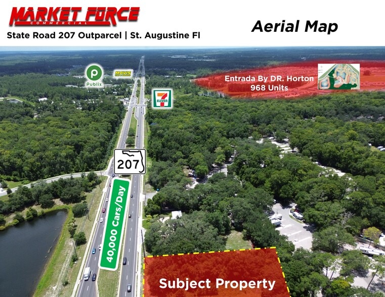Market Force CRE, à titre de conseiller du vendeur, est heureuse de présenter une occasion exceptionnelle de développement sur la route nationale 207 en expansion rapide à St. Augustine, en Floride. Le site en question, une parcelle de +-0,77 acre, a déjà été conçu et approuvé pour de multiples usages, y compris l'entraînement, le lubrifiant Quick Lube/Automotive et le commerce de détail général. Avec un accès à partir d'une intersection signalisée, de multiples locataires nationaux à proximité, plus de 1 500 maisons unifamiliales en cours de développement et une croissance démographique de plus de 33 % dans un rayon de 5 milles prévue au cours des cinq prochaines années, ce site est parfaitement adapté pour que votre marque puisse s'étendre sur le marché très convoité de Saint-Augustine.