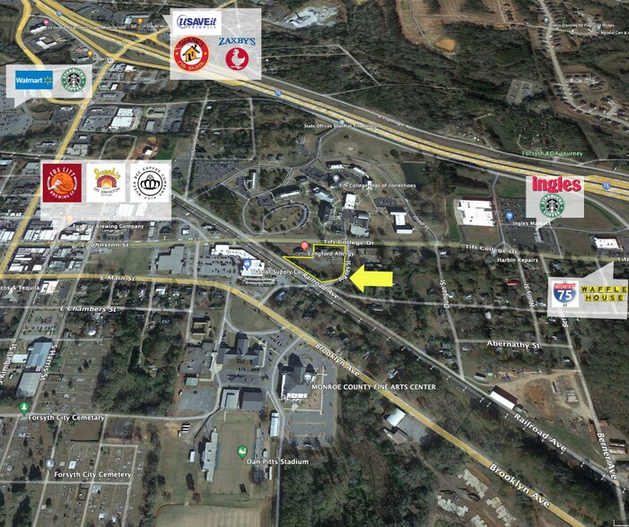 L'entreprise de routes zonées de 1.141 acres au centre-ville de Forsyth est À VENDRE ! Près de tout ! Marchez jusqu'à Fox City Brewing, aux boutiques Square, au palais de justice, aux concerts d'été et plus encore ! La propriété a tous les services publics jusqu'au site (eau et égout souterrains, alimentation souterraine, etc.). Une occasion incroyable de construire votre bureau ou votre établissement de vente au détail idéal dans l'un des foyers commerciaux en plein essor de la Géorgie centrale ! La Ville de Forsyth a approuvé une division de trois bureaux et des plans d'ingénierie déjà achevés pour la propriété à diviser (si désirée). Ou construisez un bâtiment plus grand sur le site.