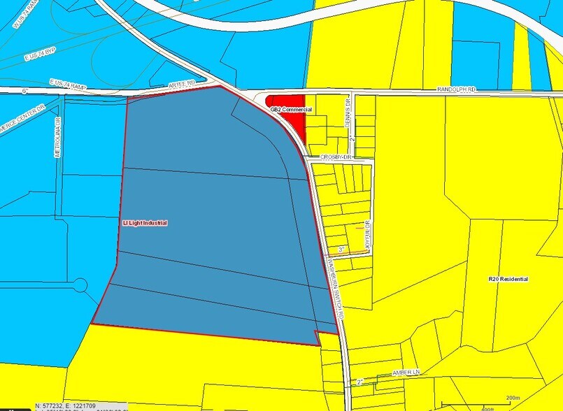Le bien en cause, d'une superficie d'environ 101,53 acres, est situé dans la ville de Shelby (ETJ), dans le comté de Cleveland, en Caroline du Nord. Il a environ 2830 pieds de façade sur le chemin Washburn Switch et 950 pieds de façade sur le chemin Artee. Le site est facilement accessible par la nouvelle sortie 197 de contournement US 74. Le site est zoné industriel léger et est desservi par l'eau et les égouts publics, le gaz naturel, l'électricité et Internet haute vitesse. Les utilisations des terres avoisinantes sont de nature légère industrielle, commerciale et résidentielle. Il n'y a pas de milieux humides sur la propriété et la topographie serait considérée comme roulante.
