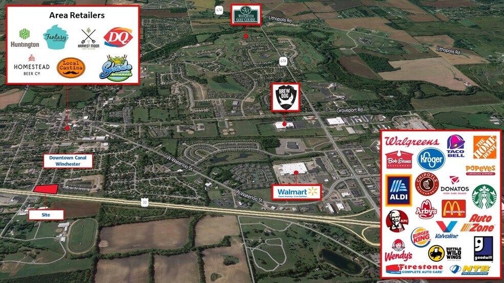 Elford Realty est ravie d'offrir cette occasion d'acheter un site de +/-1,73 acre situé au coin sud-ouest du 33 des États-Unis et de la rue N. High à Canal Winchester, en Ohio. Ce bien immobilier de premier choix possède tous les services publics du site (gaz, électricité, eau et égout) et convient parfaitement aux bureaux professionnels ou aux groupes médicaux qui visent à établir une présence dans ce sous-marché en pleine expansion. Le site offre une visibilité exceptionnelle et bénéficie d'un nombre important de trafic quotidien le long de l'U.S. 33 ainsi qu'un accès facile à partir de la rue High N. et de la promenade Turning Stone.