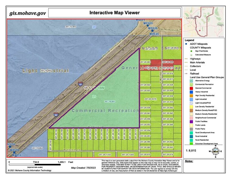 Possible uses include but are not limited to RV Park, Solar Farm, EV Charging Station, or the already Mohave County approved Mohave County Race Facility. Excellent road frontage of I-40 and Located at Exit 20. There is +/-3,500 linear feet of frontage facing Interstate 40 along with immediate paved access off the