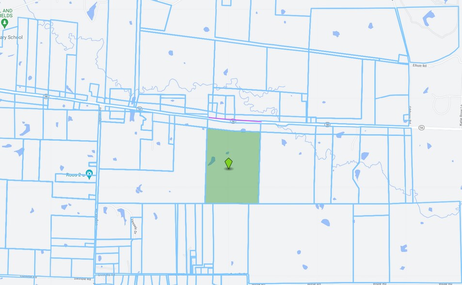 La propriété a 1 900 pieds de façade sur la route 56 et se trouve à 1 mille à l'ouest du chemin Preston.
