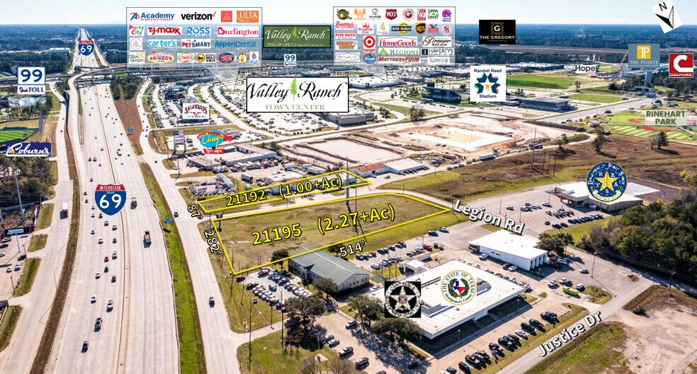 1+Ac Cleared land w' I-69 Hwy 59 Frontage and approximately 302 LF on Legion Rd. Site would be ideal for Retail, Office, Medical or Multi-Family, near Valley Ranch Town Center & Hwy 99 (Grand Pkwy)