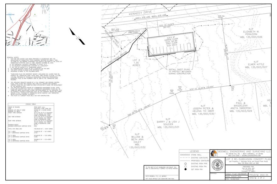 - Nous offrons 3 lots approuvés sur un terrain industriel de 4,46 acres au coin de Kennedy Drive et Alvord Park Road à Torrington, CT