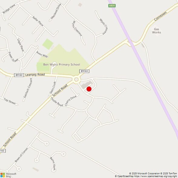 La propriété en question est située dans une zone principalement résidentielle, accessible soit par la route B9163 depuis l'A835, qui se connecte à la route principale A9 à Tore, soit par l'A862, qui se connecte également à la B9163 – School Road.