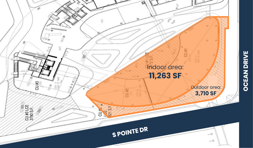 1 Collins Ave - South of 5th | Restaurant Spaces Unités de condo • Commerce de détail • 3 263-8 000 pi² • Miami Beach, FL 33139