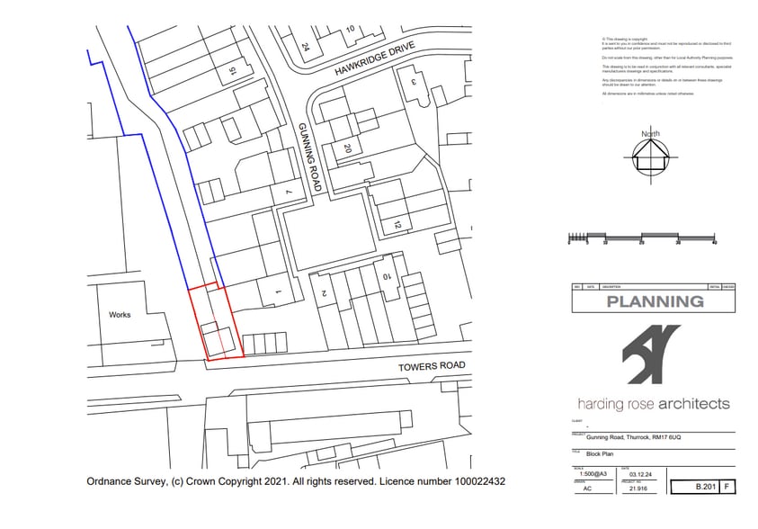 The site is on Towers Road towards the East of the Town centre and is situated in mixed use of commercial/industrial and residential street opposite Enterprise Business Park, adjoining both industrial access roads and residential gardens. The site currently forms part of a larger parcel of land. Please refer to the planning application plans for further details. The subject site has planning approval 24/01277/FUL and APP/M1595/W/25/3371488, for the erection of a Use Class E Building (Commercial, Business and Service) with associated off-street car parking and secure cycle parking provision at Street Record, Gunning Road, Grays, Thurrock RM17 6UQ.