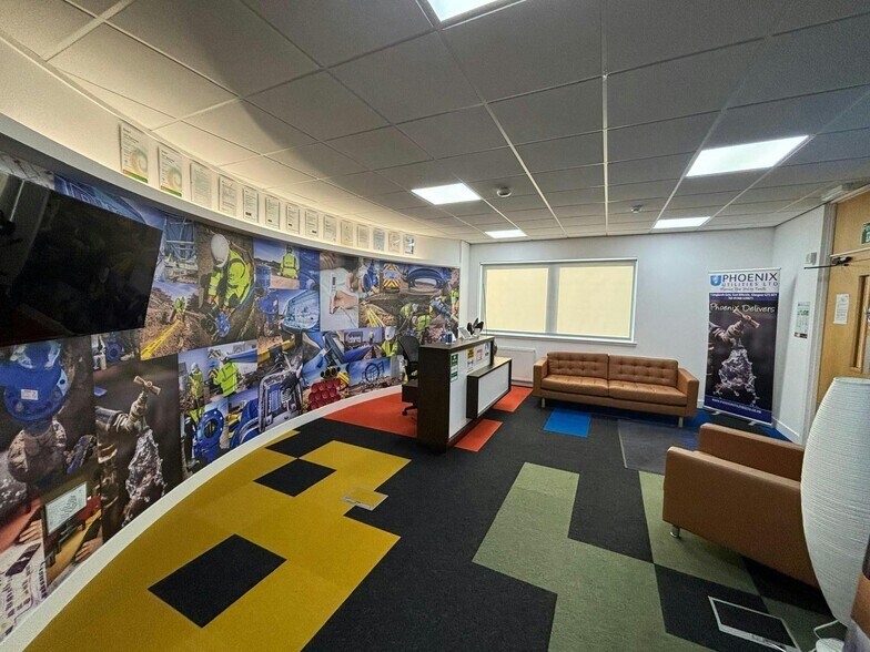 Bright open-plan office accommodation with attractive board room and benefits from raised access floors, suspended ceiling with LED lights, gas central heating, air conditioning, double glazing.