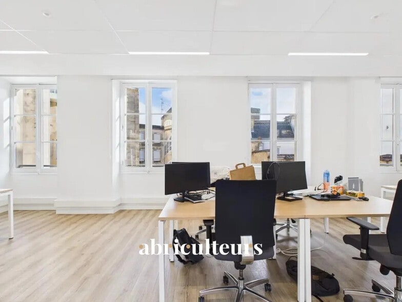 Exclusivité Abriculteurs Installez votre siège ou votre antenne régionale à l'adresse la plus convoitée de Bordeaux. Situés sur les Allées de Tourny, ces bureaux rénovés offrent le mariage parfait entre le cachet de l'ancien et le confort du moderne. L'ESPACE DE TRAVAIL : Une surface totale de 155 m² pensée pour la performance, avec une surface privative de 118 m² modulable en deux pôles distincts : Un espace de 76 m², idéal en open-space pour vos équipes. Un espace de 42 m² avec possibilité d'intégration d'une phone box privative. Le tout bénéficiant d'une hauteur sous plafond remarquable et d'une luminosité traversante exceptionnelle. Cette offre "PLUG & PLAY" en prestation de services / sous-location flexible (bail 12 mois) inclut tout : Mobilier inclus (Bureaux équipés). Fibre optique très haut débit installée. Climatisation réversible. Ménage des locaux inclus. Vie de bureau : Kitchenette équipée, salle de repos et sanitaires partagés. LES + DU QUOTIDIEN Mobilité douce & Sport : Local vélos sécurisé + Douches (idéal pour les sportifs). Accessibilité : Parking Public Tourny au pied de l'immeuble (20m), Tramway Quinconces (Lignes B, C, D) à 3 min à pied. Quartier : Vos déjeuners d'affaires et la vie d'équipe au cœur de l'effervescence des Grands Hommes. CONDITIONS FINANCIÈRES : Disponibilité : Immédiate. Contrat : Prestation de services / Sous-location flexible (Engagement 1 an reconductible). Loyer de référence : 353,20 € HT/HC/m²/an. Forfait charges : 82 € HT/m²/an. (Soit un loyer mensuel global tout compris estimé à environ 4562 € HT/HC mois). Une opportunité rare de positionner votre entreprise face au Grand Hôtel, dans des locaux où vous n'avez qu'à poser vos ordinateurs. Annonce rédigée sous la responsabilité éditoriale de M. Deramecourt Hadrien, agent commercial (EI), immatriculé au RSAC de BORDEAUX sous le n° 913 910 022, sans détention de fonds, agissant pour le compte de la SARL Abriculteurs immobilier, au capital de 5 000 €, immatriculée sous le SIREN n° 837 704 584, titulaire de la carte professionnelle n° CPI 7501 2018 000 025 842 délivrée par la CCI de Paris Île-de-France, dont le représentant légal est M. Adrien Piot, ayant son siège social au 12 rue des Halles, 75001 Paris. Les informations sur les risques auxquels ce bien est exposé sont disponibles sur le site www.georisques.gouv.fr