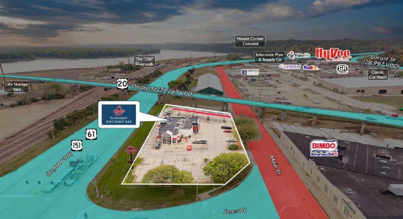 We are pleased to exclusively offer for sale the Arby's and Dubuque Discount Gas Station leased asset located at 10 Main Street in Dubuque, IA. This offering presents a rare opportunity to acquire a high- visibility asset that is strategically positioned at the intersection of Hwy 61 and 151. The property features an extremely strong performing Arby's, creating a synergistic retail environment that drives consistent foot and vehicle traffic.