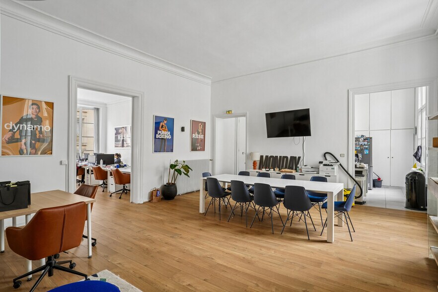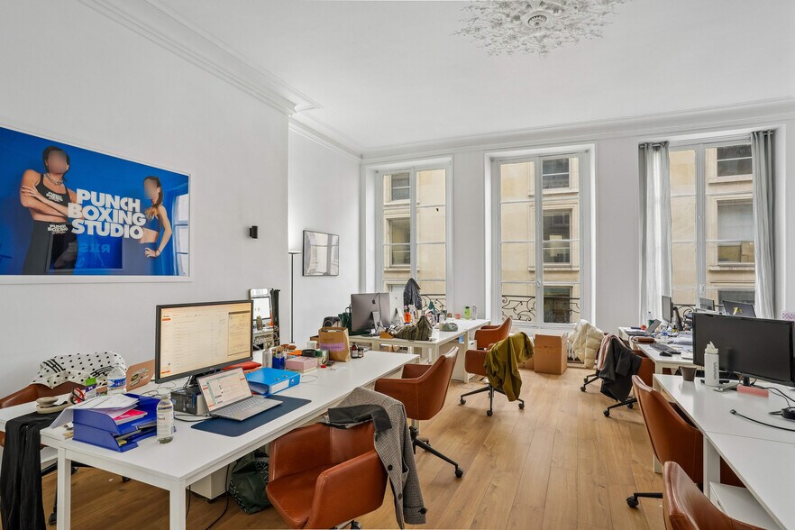 Immeuble du 18e siècles en pierre de taille de bon standing Idéalement située au cœur du 1er arrondissement, au sein d’un très bel immeuble ancien de standing, cette surface de 144 m² séduit par son cachet, ses volumes généreux et sa luminosité exceptionnelle. Bénéficiant d’une très belle hauteur sous plafond et de prestations de qualité (parquet, moulures, grandes ouvertures), les locaux offrent un cadre de travail à la fois élégant et fonctionnel. L’aménagement actuel se compose de : • un espace d’accueil, • deux open spaces lumineux, • deux salles de réunion, • une cuisine indépendante, • deux sanitaires. Deux accès distincts depuis le palier permettent une organisation fluide et flexible des espaces. L’immeuble, bien entretenu, dispose également d’un local à vélos ainsi que d’une agréable cour arborée, apportant calme et confort au quotidien. Un bien rare, idéal pour une société souhaitant allier image, confort et emplacement premium. Chauffage individuel au gaz
