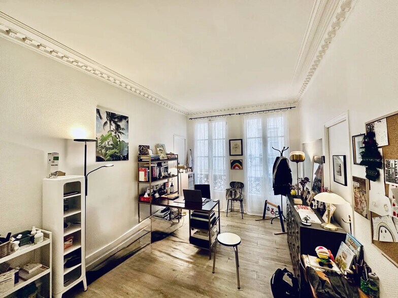 Situé au deuxième étage d’un immeuble haussmannien donnant sur une cour calme, cet espace bénéficie d’une organisation fonctionnelle comprenant trois bureaux indépendants, un open space, un sanitaire privatif et une kitchenette. Les moulures et la belle hauteur sous plafond participent au cachet des lieux, tandis que le chauffage électrique et la présence d’un ascenseur renforcent le confort d’usage. Une cave complète également l’ensemble et permet un espace de stockage dédié. L’accès se fait via un interphone et la connexion à la fibre optique est disponible.