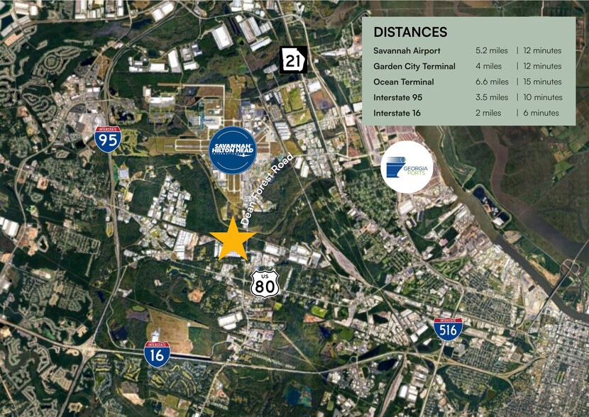 - Easy access to major roadways: HWY 21 (2.8 miles), I-16 (3 miles), and I-95 (3.2 miles