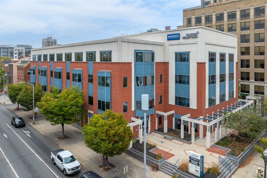 Propriété à bureaux de catégorie A de qualité avec diverses petites suites récemment rénovées disponibles à la location. Immeuble très visible, quartier central des affaires de Harrisburg City. Propriété située à proximité du Pennsylvania State Capital Complex avec un accès immédiat à la rive ouest. Des suites parfaites pour les médecins, les associations et pratiquement tous les utilisateurs de bureau professionnel ou juridique.