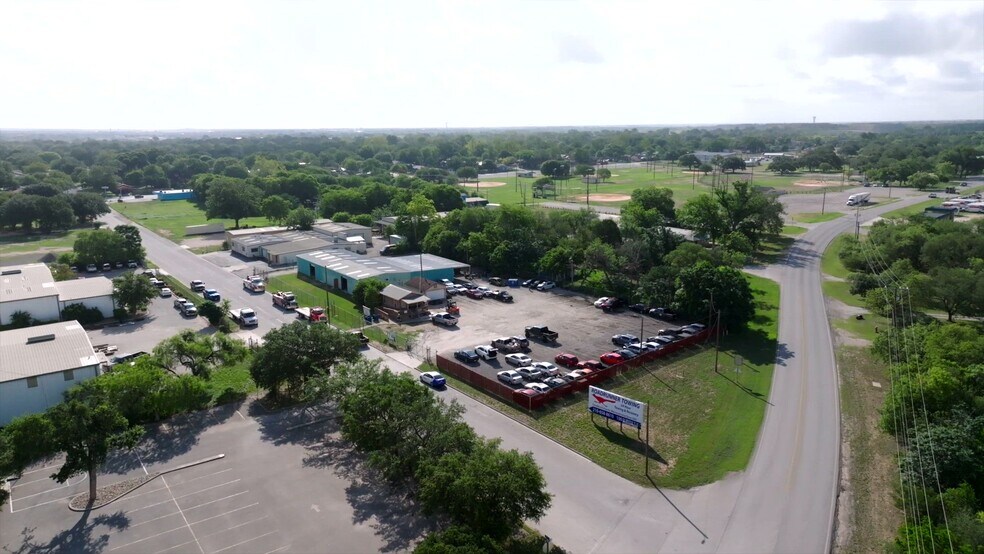 This single-story commercial property spans approximately 4,400 square feet on a half-acre lot and was built in 1976 with a metal exterior and space heating. Located in Guadalupe County. The surrounding neighborhood features buildings averaging 1,401 square feet on 0.19-acre lots, with construction dates ranging from 1962 to 2014 and average annual taxes around $2,543. No active FEMA incidents are reported for 2025.