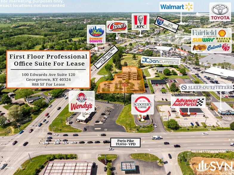 SVN Stone Commercial Real Estate is pleased to present this first-floor office suite available in a well-maintained office facility in Georgetown, KY. The building offers plenty of parking and close proximity to restaurants and retail attractions. Interstate-75 is 0.7 miles away and the Toyota Assembly Plant is less than 3 miles away. For more information please contact Wade Haga, CCIM at wade.haga@svn.com // 859.285.2202.