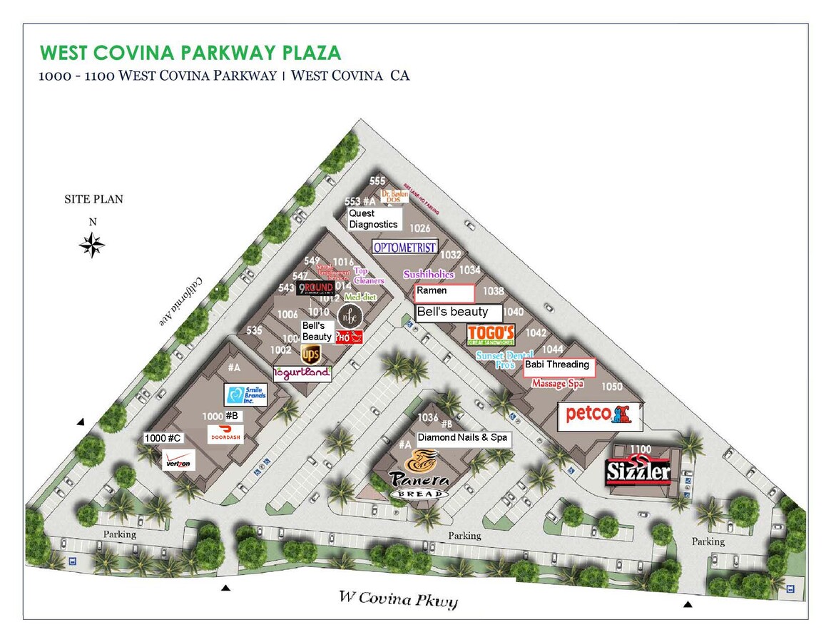 West Covina Parkway Plaza 1000-1100 W West Covina Pky 9 000 pi² d'espace disponible • Commerce de détail • West Covina, CA 91790