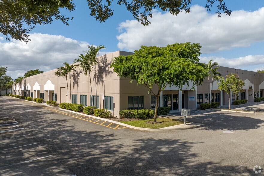 Espace d'entrepôt pour Lease Sunrise, Floride Multilocataire 1 500 Sq. Baies d'entreposage en pieds comprenant deux ou trois bureaux. Porte de garage de 12 pieds de hauteur, plafond clair de 18 pieds avec mezzanine. À l'angle de Nob Hill et Commercial à Sunrise, un pâté de maisons au sud de l'entrée de la rue Commercial de la Sawgrass