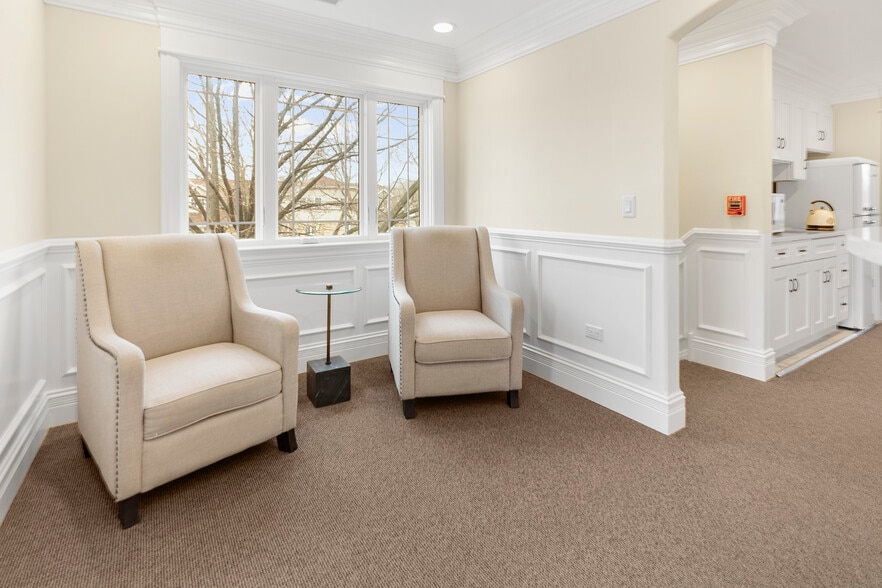 - 2nd Floor Coworking Space with two private offices, private restroom, reception workstation, and waiting area