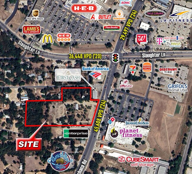 Subject Property is located on the West side of Manchaca Road just South of Slaughter Lane