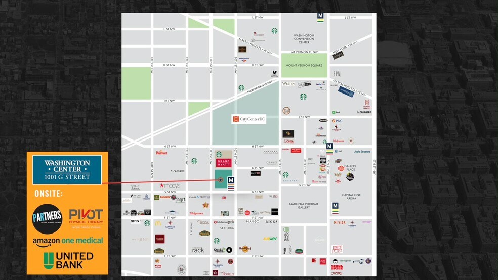 - Entrée privée de la station Metro Center située dans l'atrium de l'immeuble. Accès direct aux lignes bleues, oranges, argentées et rouges.