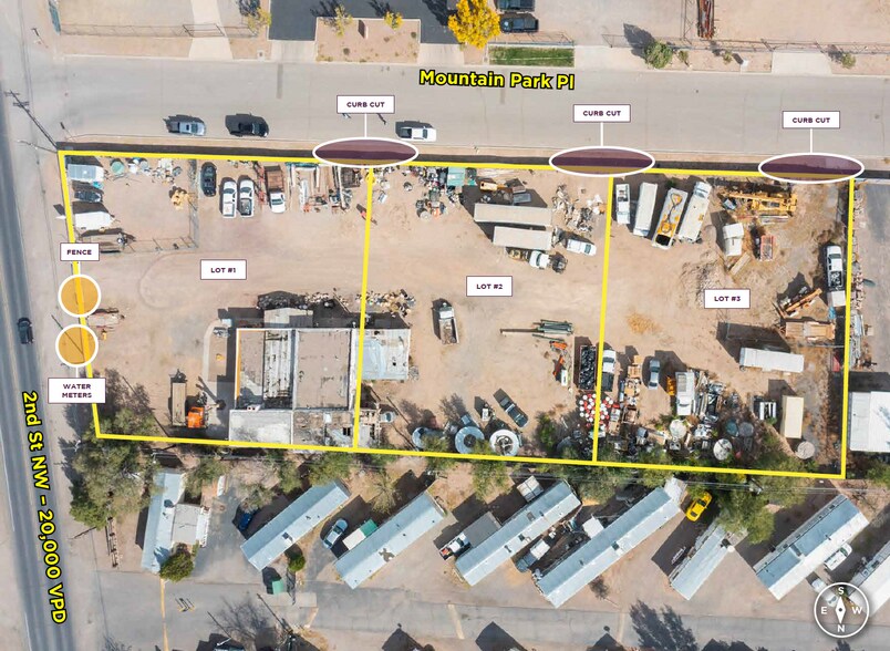- Accès : Découpes de bordure pour chaque parcelle du parc Mountain, plus découpe de la bordure et entrée sur la 2e rue