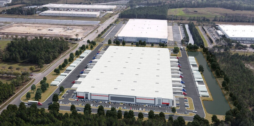 Strategically located near I-295 and I-10, the property provides seamless connectivity to JAXPORT, Jacksonville International Airport, and major Southeast markets. The expansive 185-foot truck court, complemented by 80 dock-high doors and two drive-in doors, supports rapid loading and unloading. Additional features include 100 trailer parking spaces, 200 expandable car parking spaces, and a 7-inch reinforced concrete slab for durability under heavy loads.