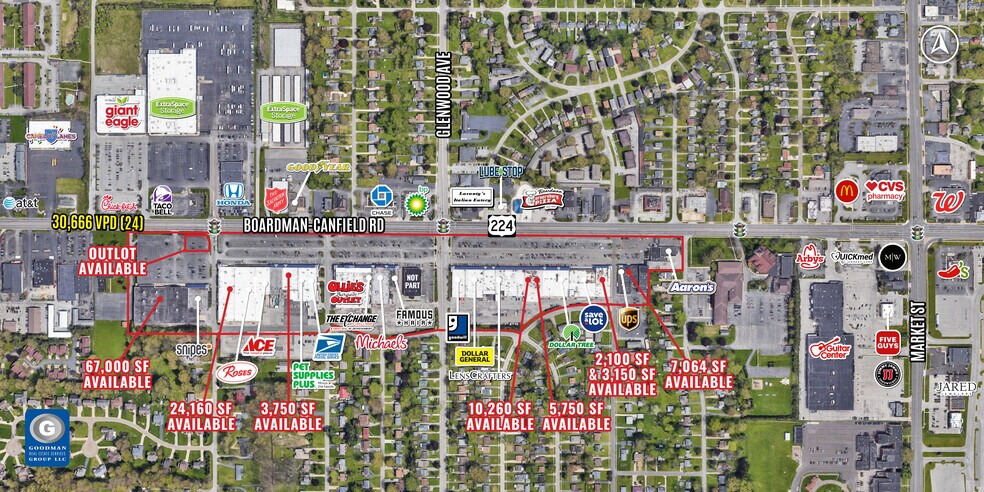 Well positioned shopping center located along one of the busiest retail corridors in the Boardman and Youngstown trade area Join Michaels, Ollie’s Bargain Outlet, Ace Hardware, Save a Lot, The UPS Store, and many more Located along Boardman-Canfield Road with excellent visibility and access (30,666 VPD), near Southern Park Mall Surrounded by dense residential population and strong daytime workforce Versatile spaces now available and suitable for a wide range of retail uses Multiple signalized access points, ample parking, and large pylon signage 1.4 million visitors a year AVAILABLE: 1,575 to 67,000 SF