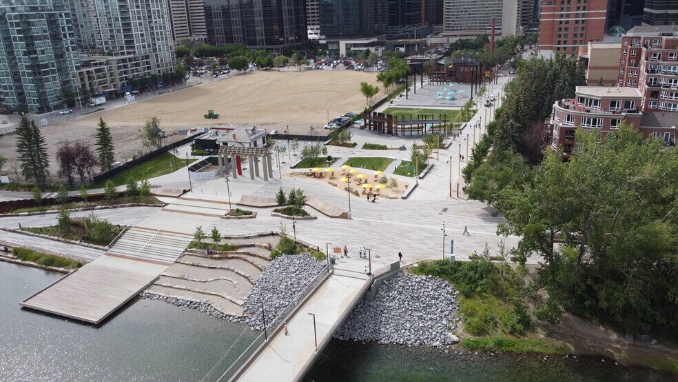 - Emplacement de choix dans Eau Claire Plaza, à quelques pas du sentier de la rivière Bow et du parc Prince’s Island.