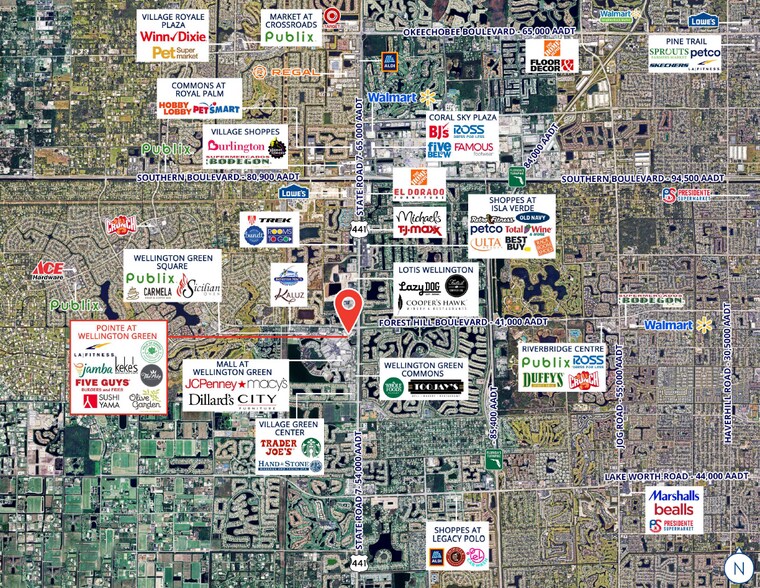 Situé stratégiquement au cœur du corridor commercial le plus dynamique de Wellington, à proximité immédiate du Mall at Wellington Green, The Pointe propose un mélange exceptionnel de commerces haut de gamme, de restaurants et d'équipements modernes conçus pour répondre aux exigences de style de vie de la population résidentielle aisée et en pleine croissance de la région. Avec une solide sélection de locataires nationaux et régionaux tels que LA Fitness, Ideal Image, Talkin’ Tacos, Jamba Juice, Keke’s Breakfast Café, The Tipsy Salon, Saito’s, Ideal Nutrition, Five Guys, Cold Stone Creamery, et bien d'autres, cette destination à fort achalandage se distingue sur le marché.