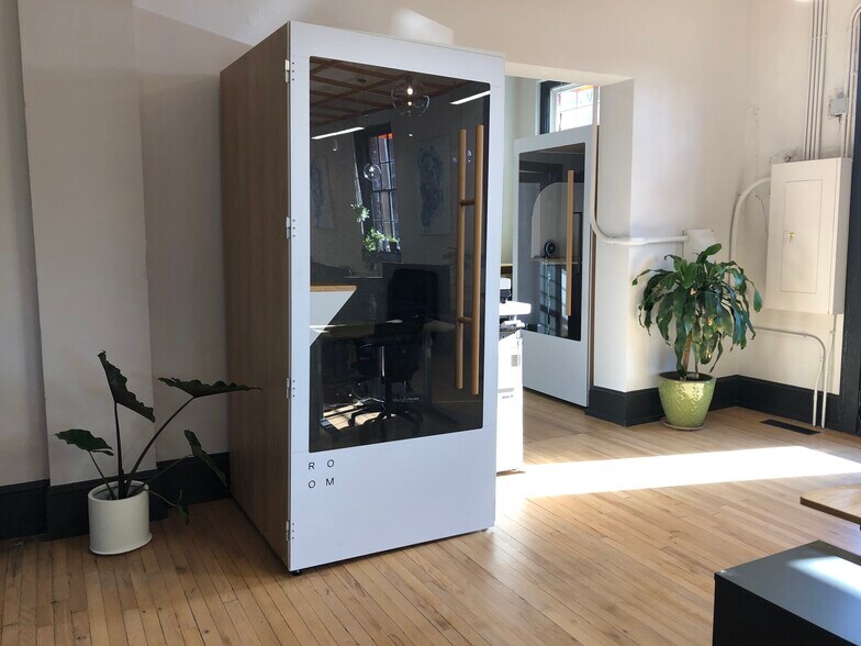 - 3 soundproof phone booths/conference room