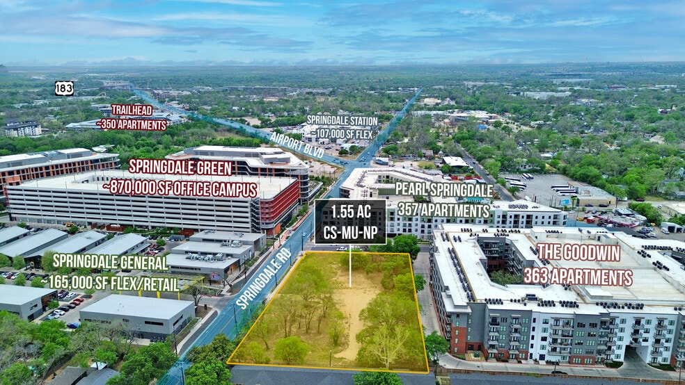 The property benefits from an institutional-grade location, situated directly across from the acclaimed Springdale General and the massive Springdale Green office development. As the Airport Blvd corridor continues its rapid transformation, this site sits at the epicenter of a booming district characterized by a surge in Class A multi-family and commercial deliveries. Adjacent to brand-new residential developments and high-traffic creative hubs, 1020 Springdale represents a rare chance to develop a high-visibility project in one of the most vibrant and walkable corridors in urban Austin.