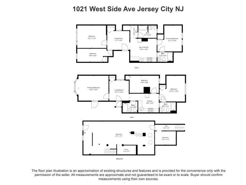 Fully renovated two-family home just a short walk from the Journal Square PATH station — ideal for commuters traveling to New York City, Newport, Hoboken, and beyond. Located in the desirable Marion neighborhood, the surrounding neighborhood provides excellent everyday amenities, including a swimming pool diagonally across the street, a neighborhood library next door, and a park/playground directly across the home. Residents also enjoy proximity to beloved local dining spots such as 15 Fox Place, adding to the vibrant Jersey City lifestyle. This spacious property offers two large, recently renovated 3-bedroom, 2-bath units, making it an excellent opportunity for owner-occupants, investors, or multi-generational living. The top unit is currently vacant, allowing buyers to move in immediately while generating rental income from the other unit. Both units feature recent renovations, original hardwood floors, ceiling fans, and bright interiors with a neutral color palette ready for your personal touch. The kitchens combine style and functionality with black quartz countertops, white shaker cabinetry, white tile backsplash, and ample space for a breakfast bar or dining table. Bathrooms are thoughtfully finished with floor-to-ceiling tile, bathtub and shower combinations, vanity storage, and mirrored medicine cabinets. The upstairs unit includes a Jack-and-Jill bathroom layout, offering additional floor plan flexibility. An unfinished basement provides excellent storage and future potential, whether used as a workshop, additional storage, or for future improvements that can further enhance the property’s value. A rare opportunity to own a move-in-ready two-family home in one of Jersey City’s most desirable neighborhoods.
