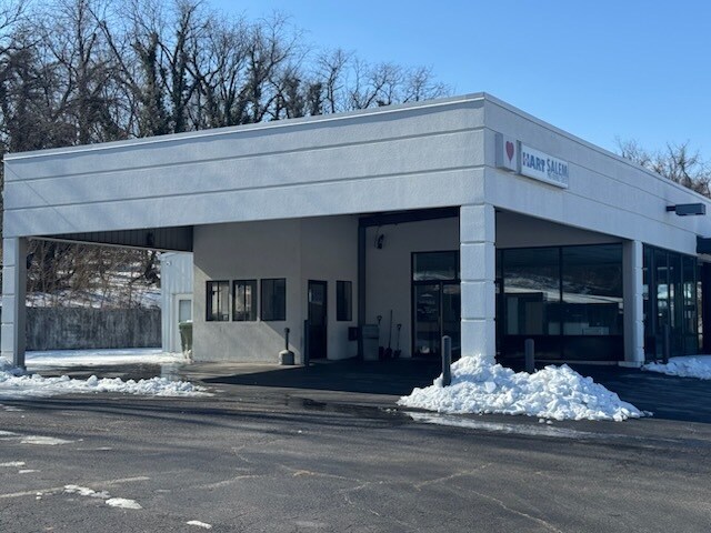Former automobile showroom, sales and service facility on East Main Street, Salem. Well maintained building of approximately 6,066 square feet. Interior includes showroom, private offices, four bays with lifts, parts room, break area, storage and restrooms. 1,200 square foot exterior canopy provides a covered drop off area. Abundant paved parking on 1.3 acres. Great visibility with a traffic count of 13,362 vehicles per day on East Main Street. Flexible Highway Business District (HBD) zoning. Potential uses could include equipment rental, ATV sales and service, cycle shop sales and service, auto detailing, storage and other alternative uses. Landlord reserves the right to approve the tenant’s intended use.