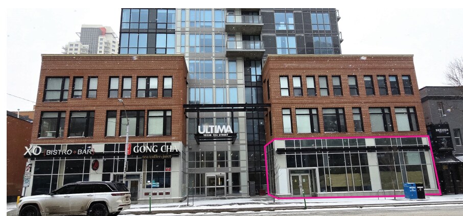 Condo commercial au rez-de-chaussée situé dans la tour Ultima. La tour Ultima est un gratte-ciel de 32 étages comptant 199 suites résidentielles. Situé à moins d'un pâté de maisons au sud du district des glaces. 2 stationnements souterrains inclus. Exposition élevée à la circulation des piétons et des véhicules à partir de la rue 103