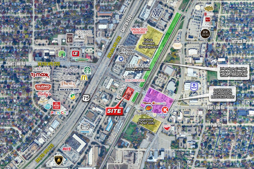 - • Easily accessible & visible from Belt Line Rd/Main St & US-75
