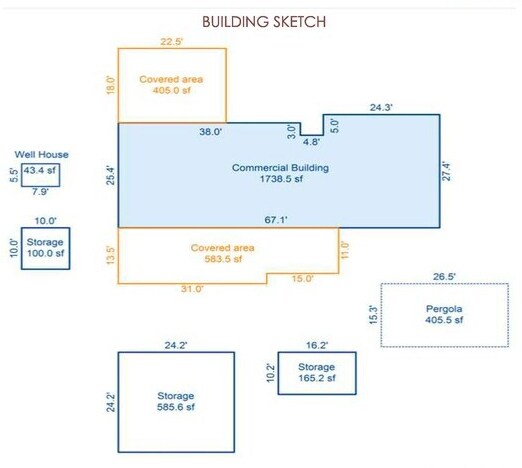 - A 1,733 SF Ranch style building and a detached secondary structure
