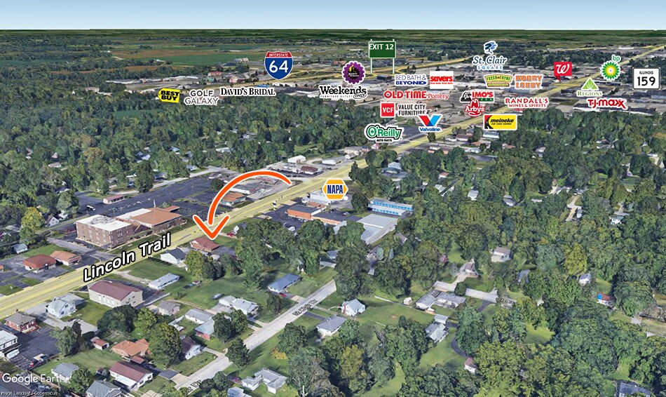 A 1,680-square-foot office building is available for lease. It has a reception area, six offices, a conference room (or a 7th Office), and a break area in the basement with storage. Former attorney’s office. Asphalt parking lot, 10 spaces. Located in a high-traffic area on Lincoln Trail in Fairview Heights. This is a heavy retail/office location.