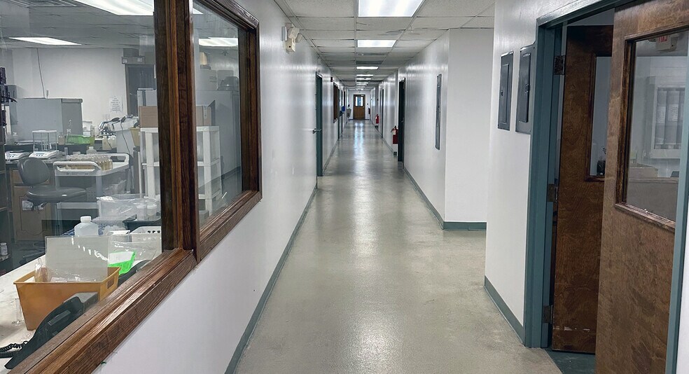 Currently built out for lab/office use but demo can allow for shop/warehouse with ceiling heights between 9.5' - 12.5' clear