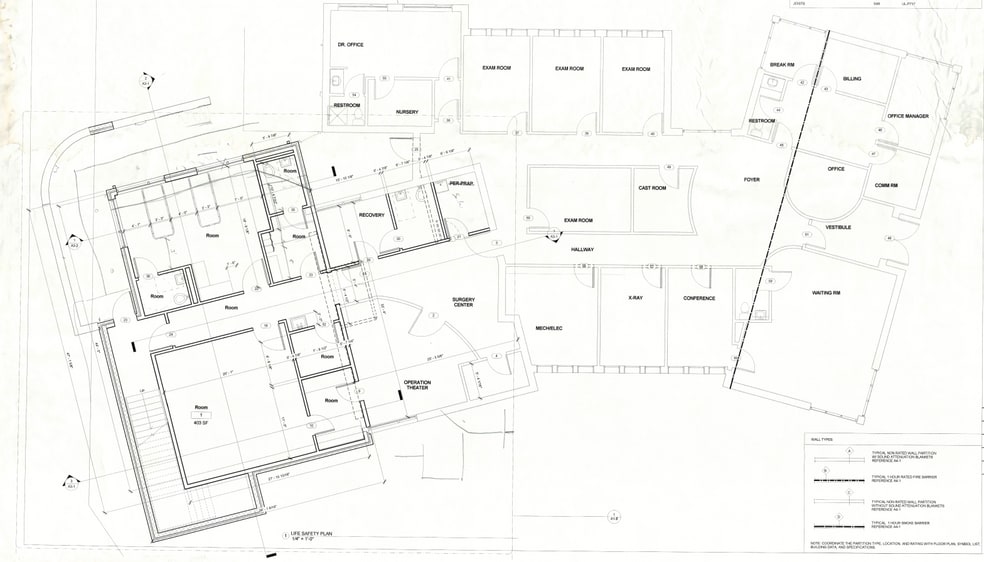 - Two surgical suites, four exam rooms, two offices, five restrooms, and storage room