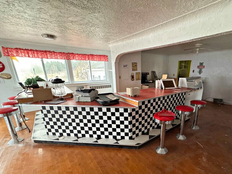 Vue imprenable sur le lac Huron et l'île Mackinac. Anciennement un restaurant, mais vendant uniquement des biens immobiliers. Comprend une grande terrasse avec salle à manger à l'extérieur disponible. L'hébergement au niveau supérieur peut être utilisé pour le logement sur place ou le logement locatif (son utilisation la plus courante). N'importe quel équipement peut rester. Sous-sol complet avec fournitures de restaurant supplémentaires, inc., mais sans aucune valeur sur le contenu. Il s'agit toujours d'une opération saisonnière. Situé juste à l'extérieur du centre-ville dans la rangée des motels, à distance de marche de 7 grands motels. Situé sur la seule falaise commerciale de la ville et sur le site de plusieurs anciennes cheminées marines. Sièges à l'intérieur pour 42 places, terrasse extérieure 36. Anciennement The Hillside House et Joe's Diner pendant une courte période. Airbnb possible.