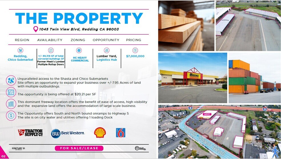The +/-7.95 acre opportunity boasts over +/-89,318 SF of buildings situated on one of the main freeway arterial traversing California. With its freeway visibility and ease of access this opportunity offers unparalleled projection in the regional marketplace. The former Meek’s Lumber location has high ceilings and offers a large open retail floor. The large lot size allows for room to navigate trucks or large machinery.